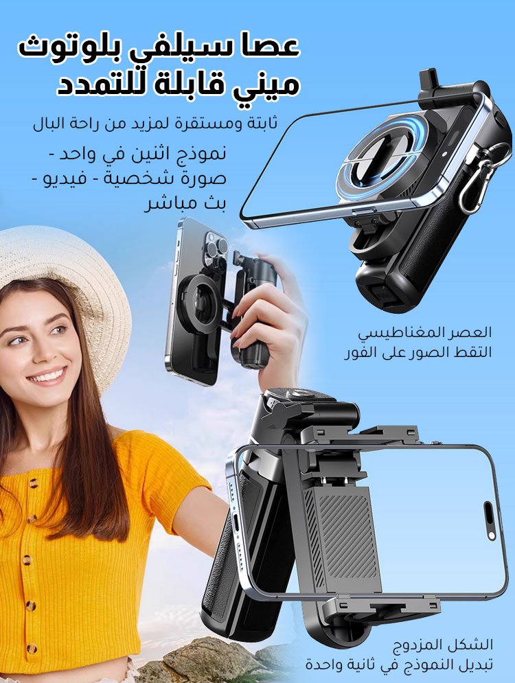 【مغناطيس ومشبك في جهاز واحد】عصا سيلفي بلوتوث ميني قابلة للتمدد
