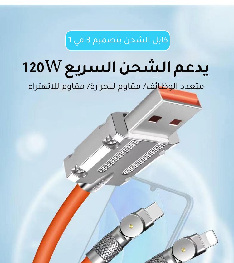 خلال الساعات الخمس الأخيرة، 3 قطع بـ 169 ريال، شحن سريع 120 واط، منافذ متعددة بما في ذلك Type-C، مناسب لجميع أنواع الهواتف، رأس الشحن قابل للدوران 180 درجة، يدوم 5 سنوات دون تلف، الاختيار الأمثل لشحن يومي سلس! وداعاً لقلق البطارية!