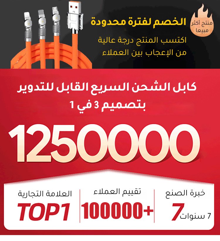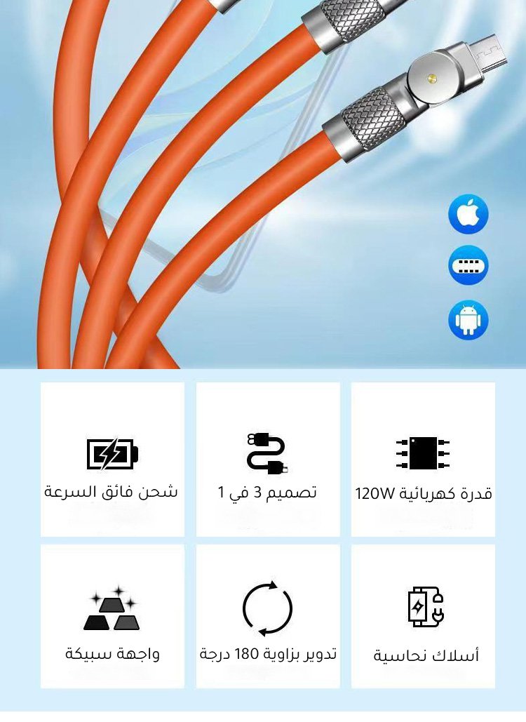 خلال الساعات الخمس الأخيرة، 3 قطع بـ 169 ريال، شحن سريع 120 واط، منافذ متعددة بما في ذلك Type-C، مناسب لجميع أنواع الهواتف، رأس الشحن قابل للدوران 180 درجة، يدوم 5 سنوات دون تلف، الاختيار الأمثل لشحن يومي سلس! وداعاً لقلق البطارية!